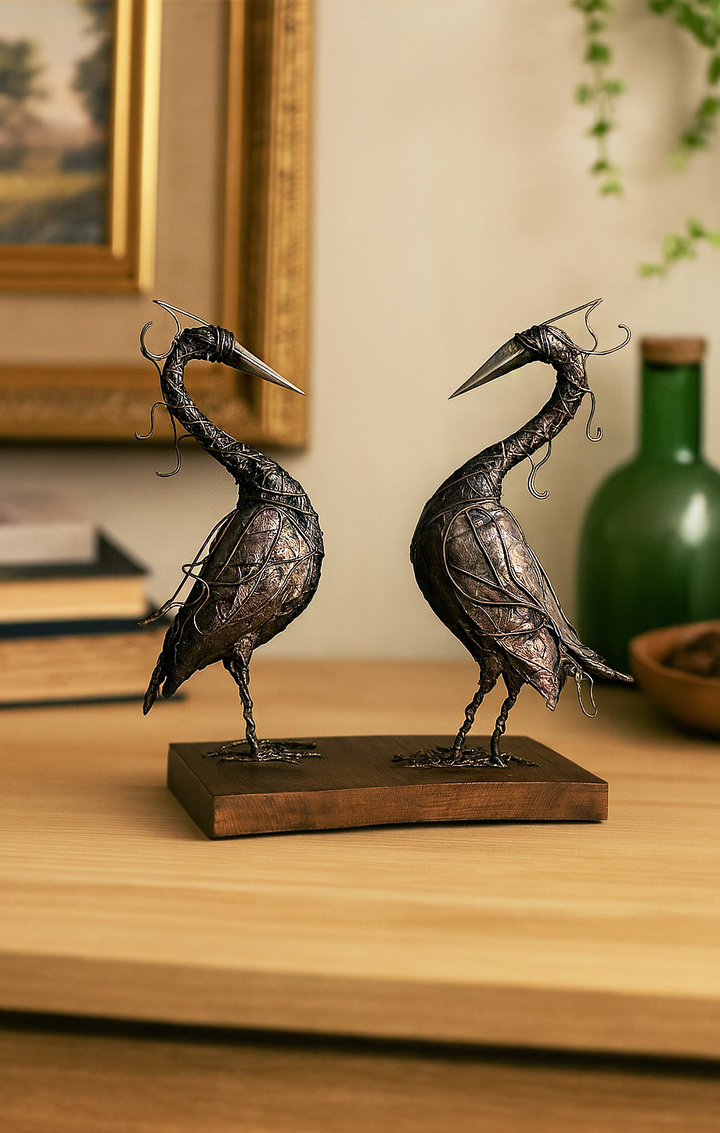 Handcrafted Metal Twin Crane Decoration